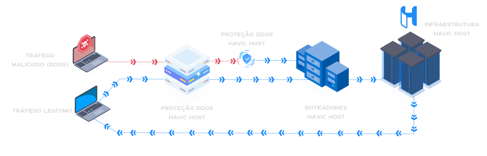 Nossa infraestrutura é protegida por uma avançada solução DDoS inline, garantindo a disponibilidade e segurança de seus serviços online.